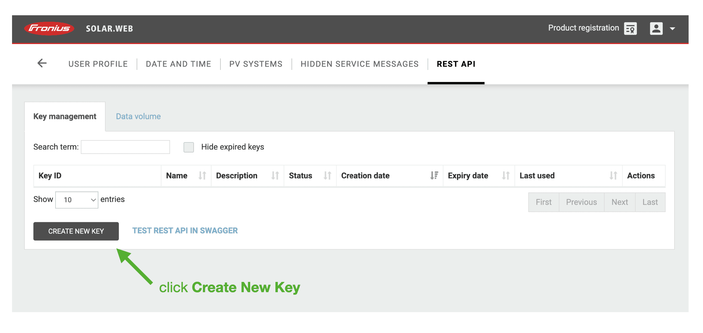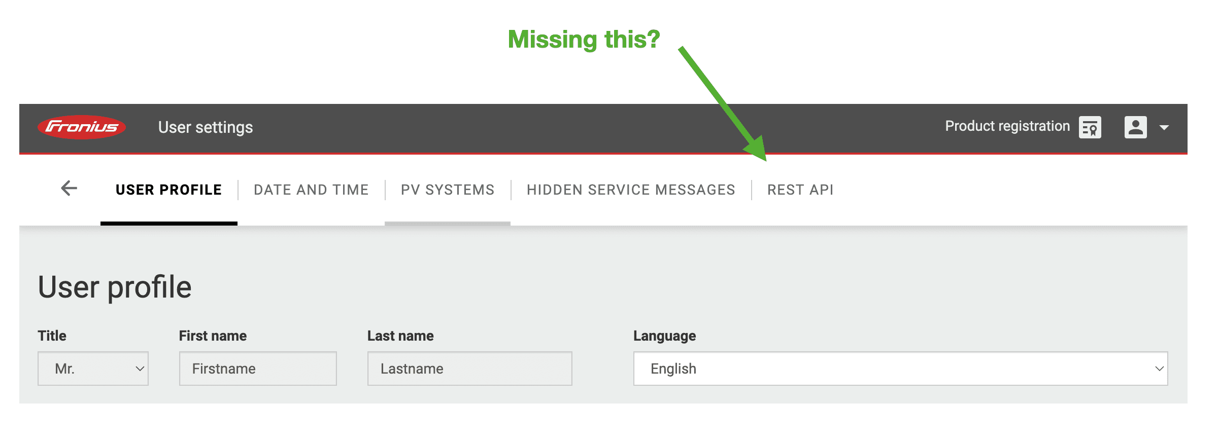 Once you receive a response from Fronius, log back in to your account and click on the fancy new “REST API” link in your User settings area.